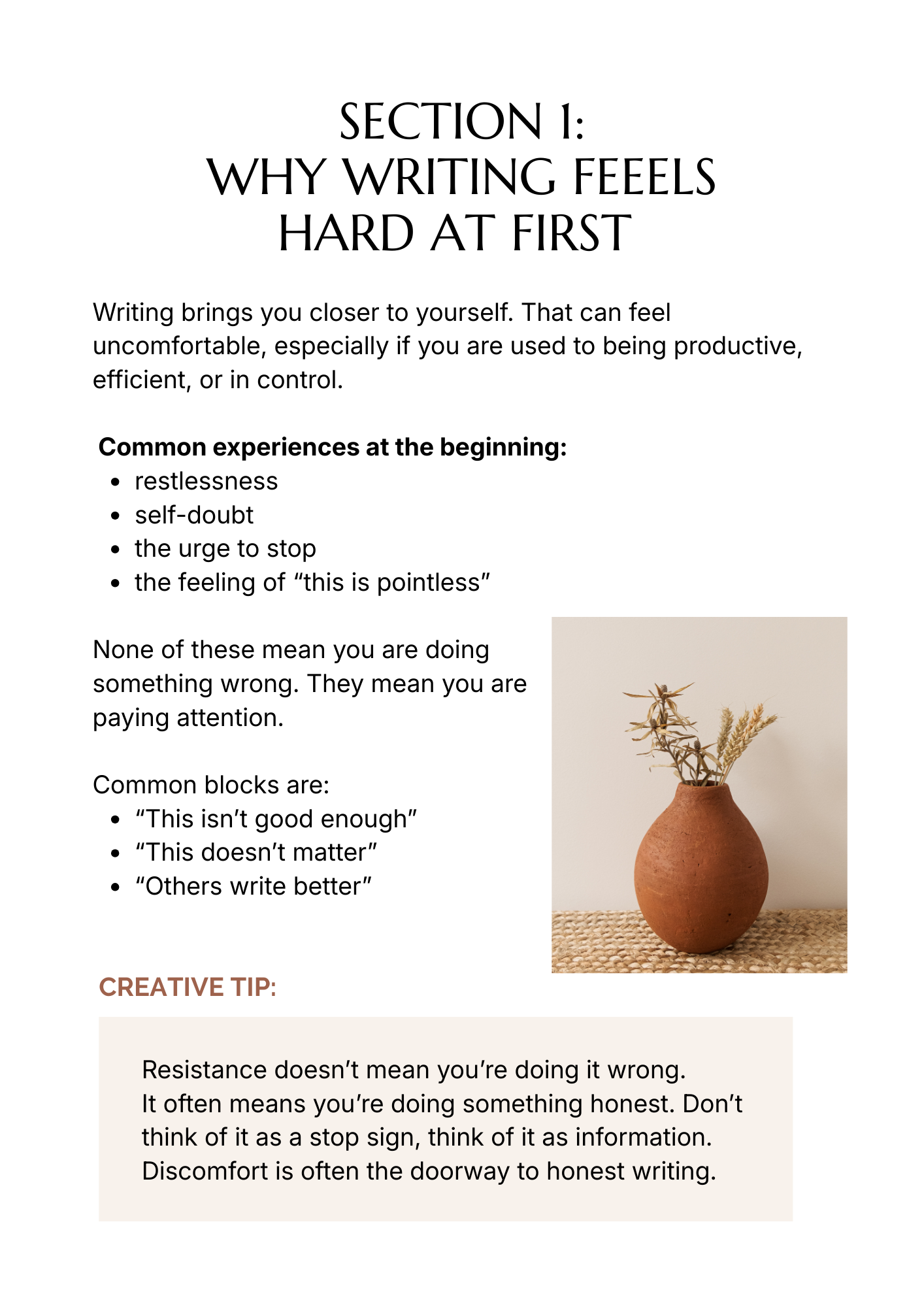 This workbook was created to change that. Not by motivating you, but by making writing feel safe again.
