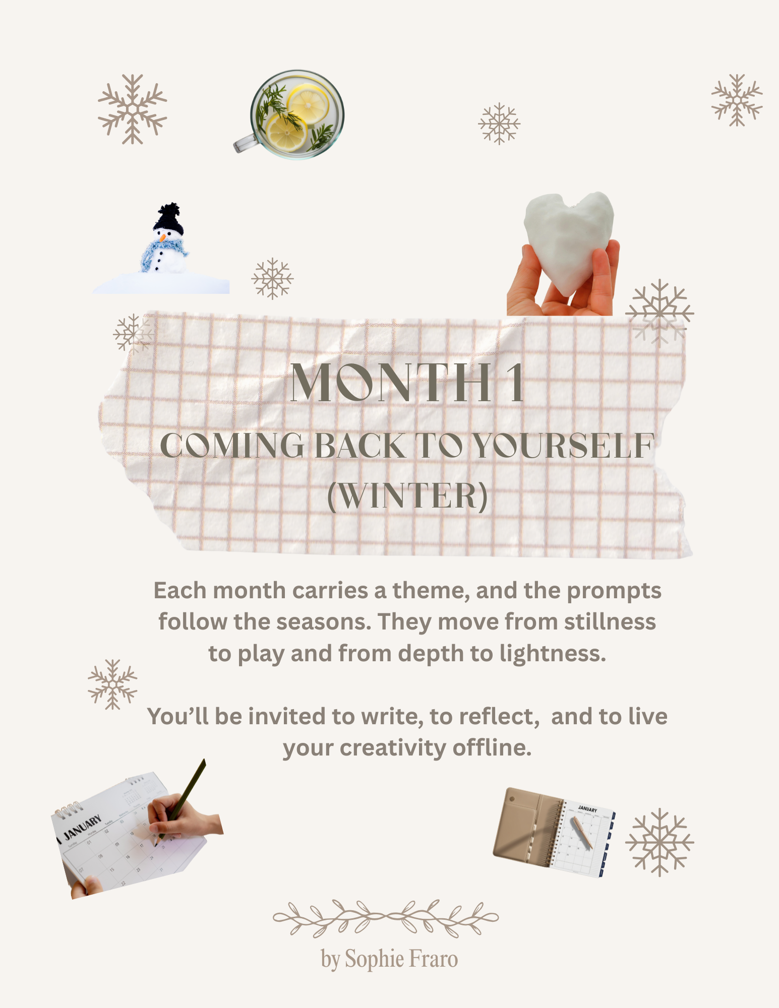 Each month follows a seasonal theme. From stillness to play, from depth to lightness.